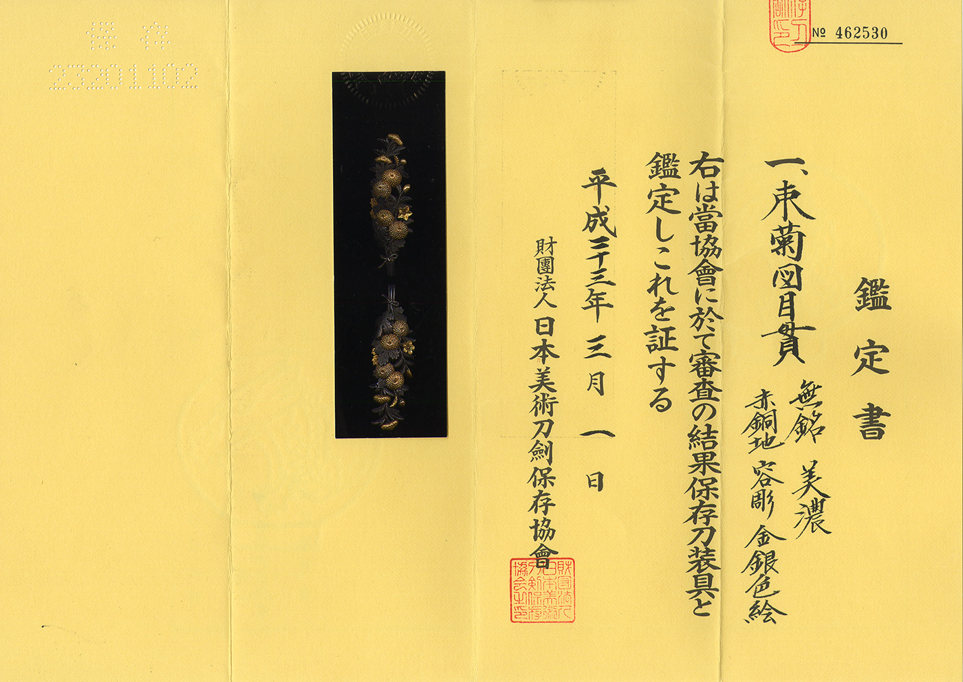 Fuchikashira > FittingsAF25260 Fuchi Kashira: Iwamoto Ryokan (Kao) (NBTHK Tokubetsu Hozon Paper) | Expired | ¥450,000 bid count:- | |