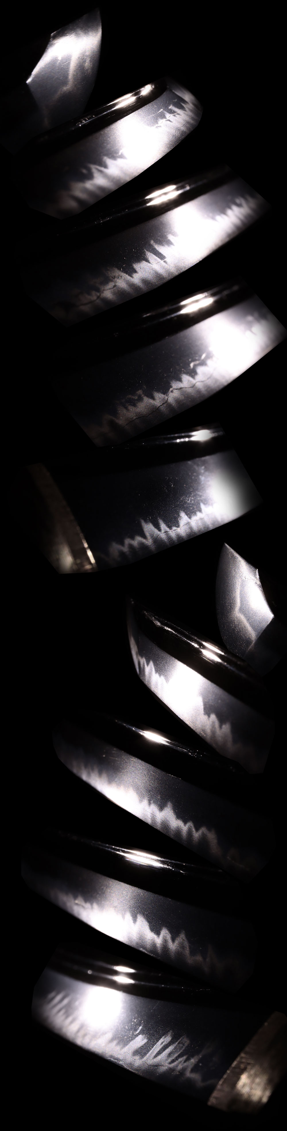 Jigane: Ko-itame hada, well-forged, forming a fine and refined jigane.