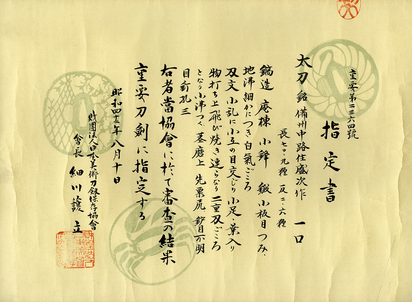 As it bears a tachi-mei, it is unquestionably a Bitchu work, and more materials in the future may confirm its attribution.