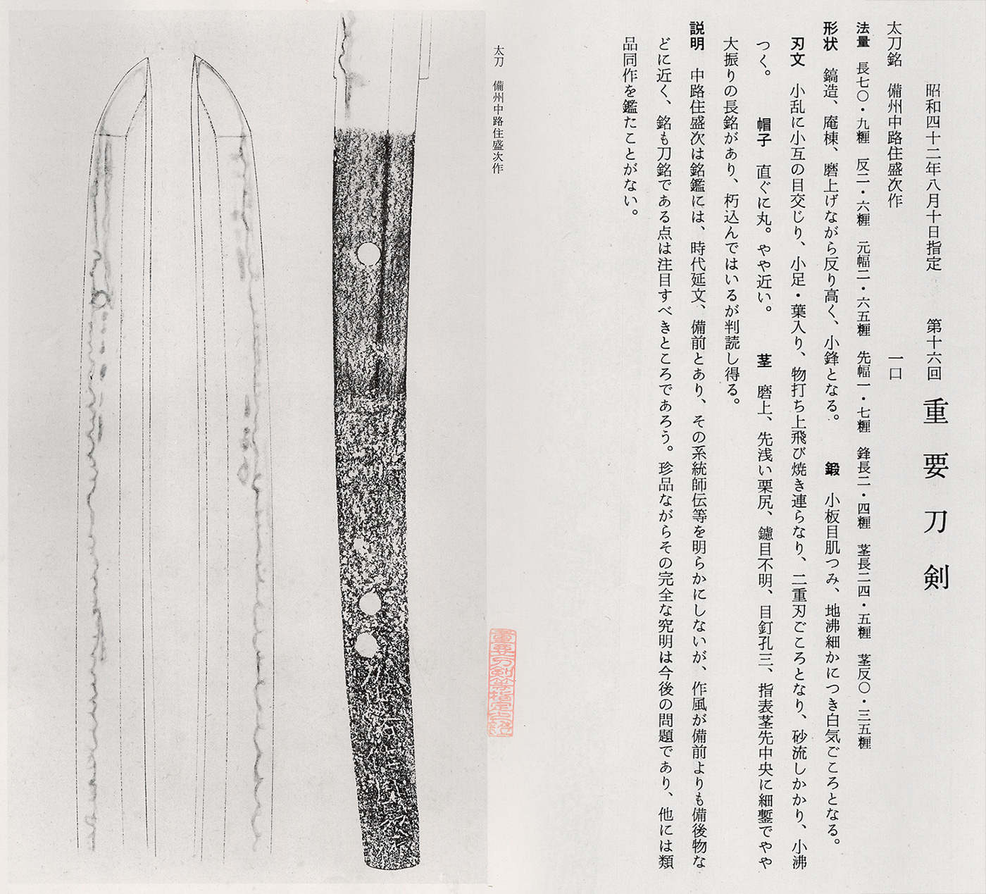 Signature: Bishu Nakaji Ju Moritsugu Saku 備州中路住盛次作