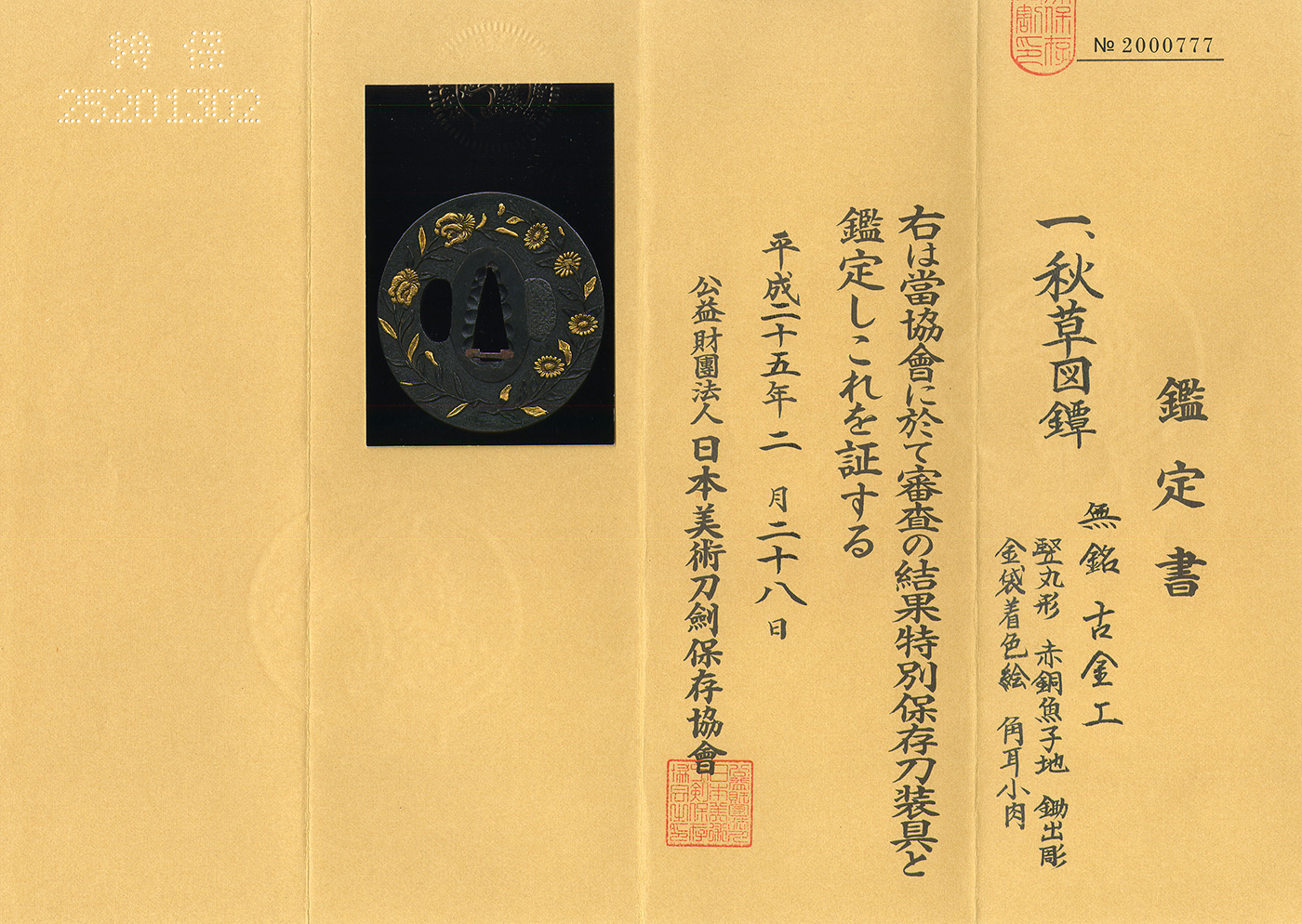 Tsuba:Autumn glass(NBTHK Tokubetsu Hozon paper)