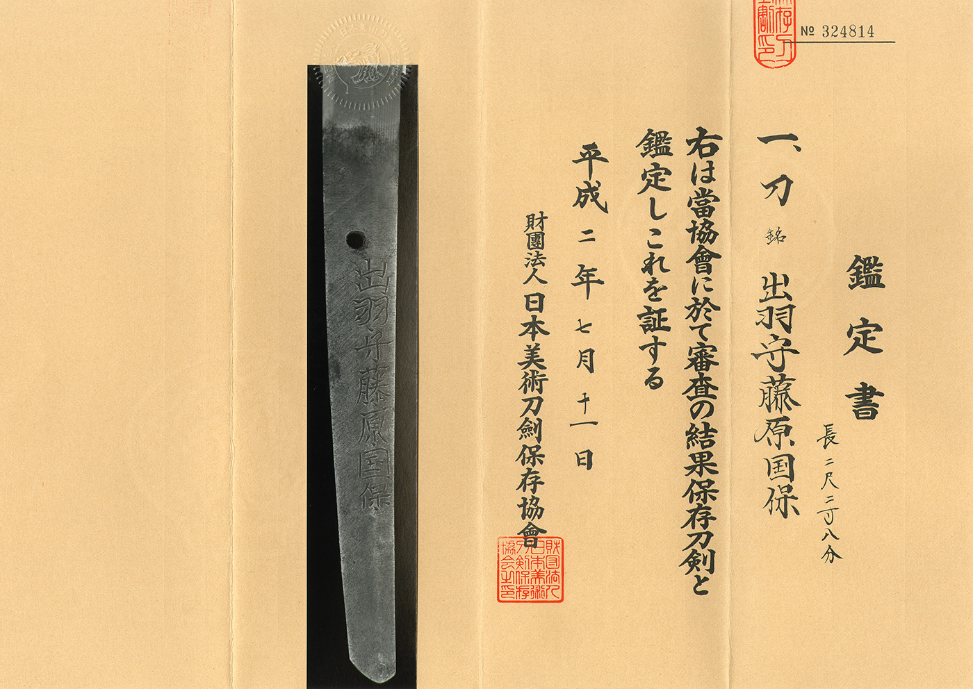 Sayagaki: Dewa no Kami Fujiwara Kuniyasu.