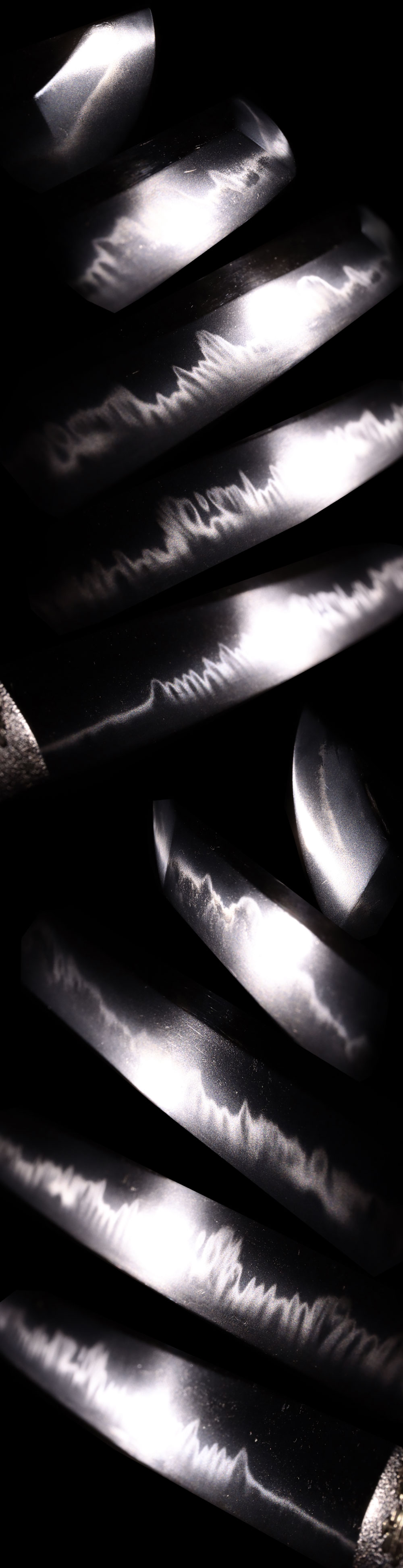 Jigane: Ko-itame hada, well forged and tightly compacted.