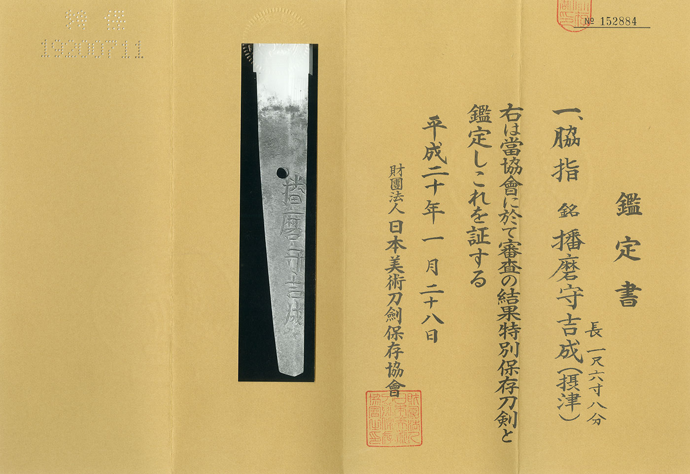 Signature: Harima Kami Yoshinari.