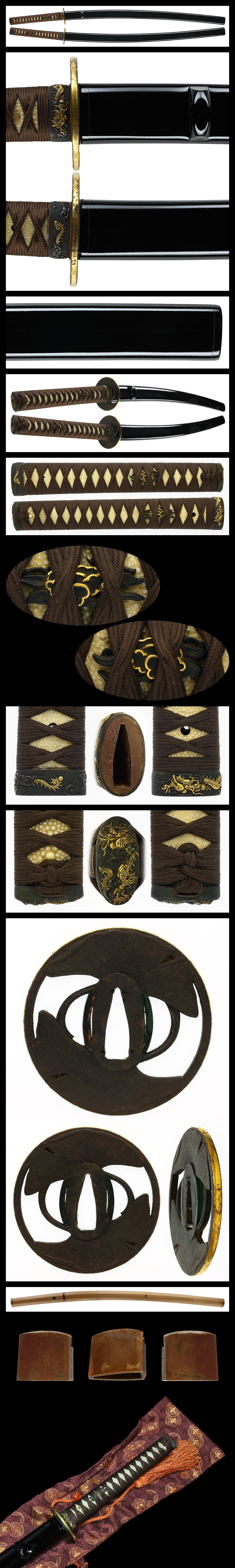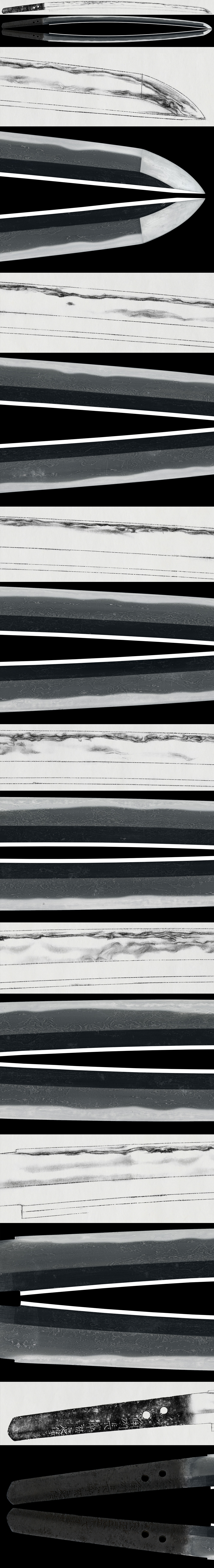 Hamon: Nie-deki gunome midare, with the boshi running into midare, forming a double hamon, rich in variation.