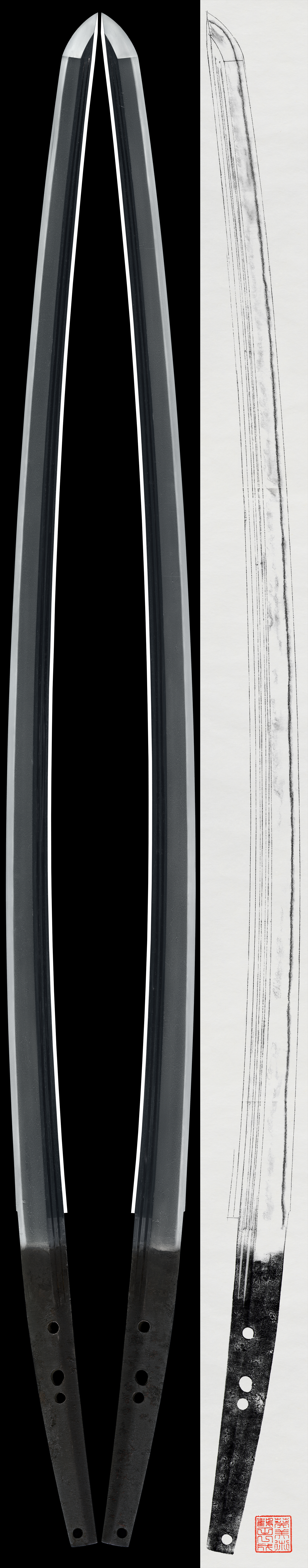 Shape: A blade with deep curvature, carved with double grooves (futatsu-suji-hi) on both sides.