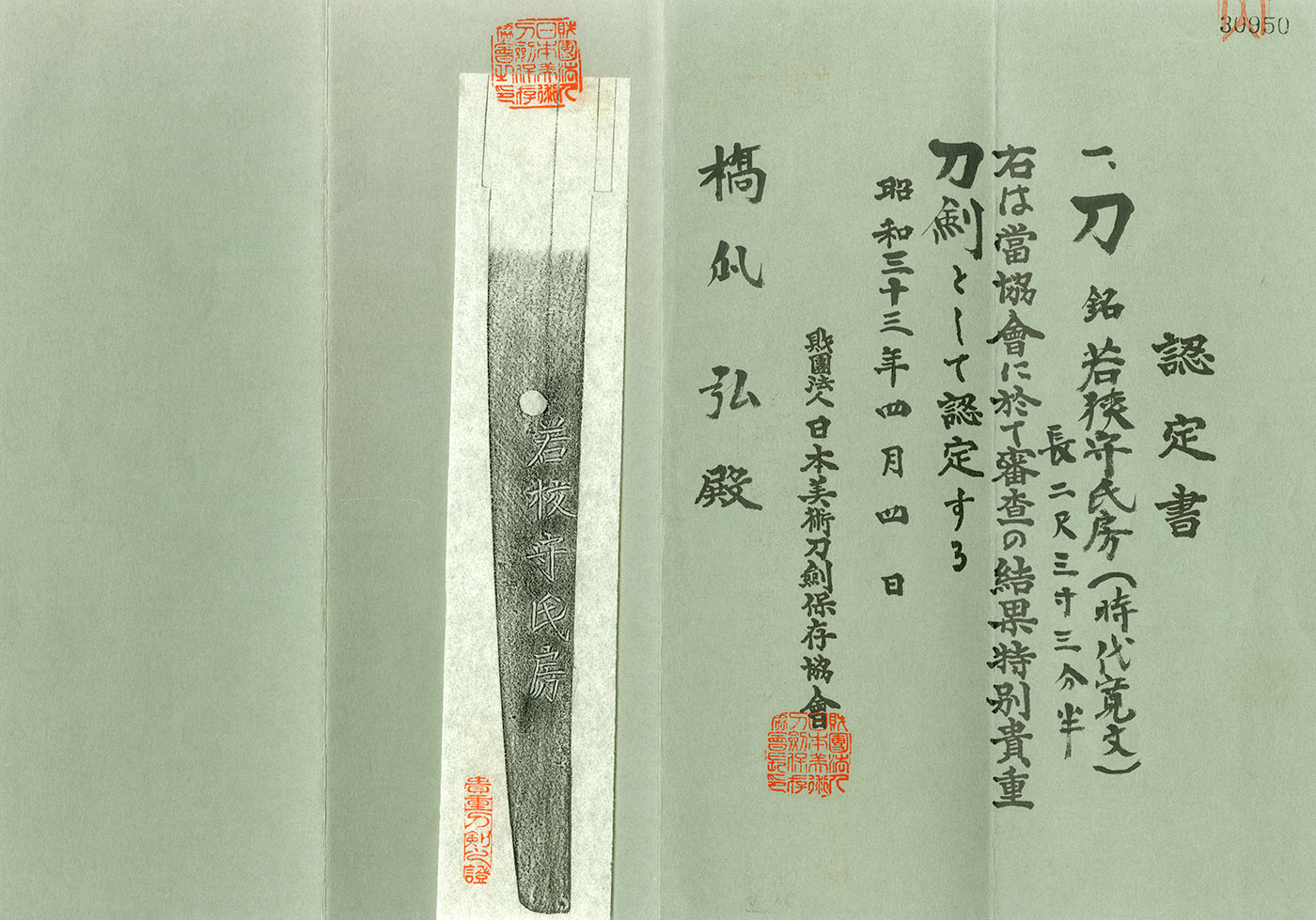 Katana in Shirasaya (NBTHK Tokubetsu Kicho Token)