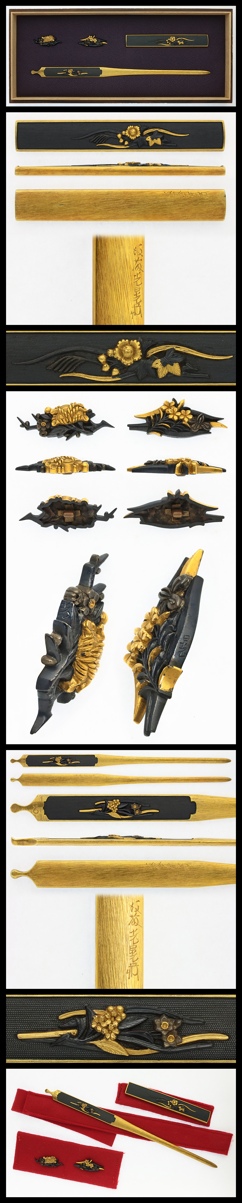AF25673 Matching Fittings (Kōgai, Kozuka, Menuki): : Gotō Mitsuaki (Kao) (Kozuka & Kōgai) Mitsu – Aki (Menuki)(Tokubetsu Hozon Tōsōgu Certificate)
