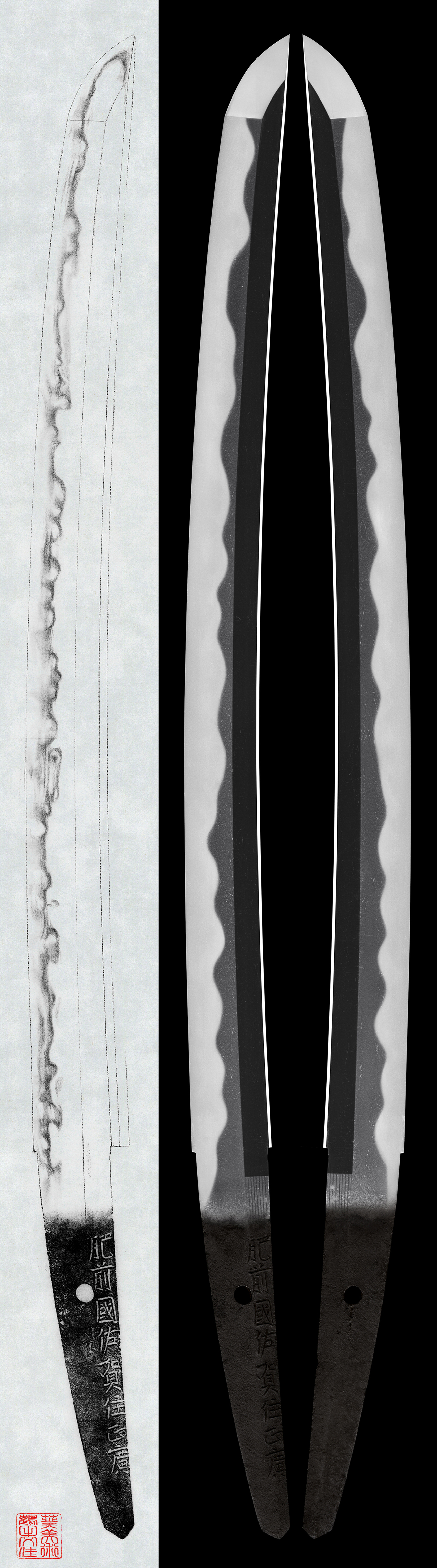 The hamon resembles towering nyudo-gumo clouds drifting across the sky, with a thick nioiguchi creating a magnificent landscape.