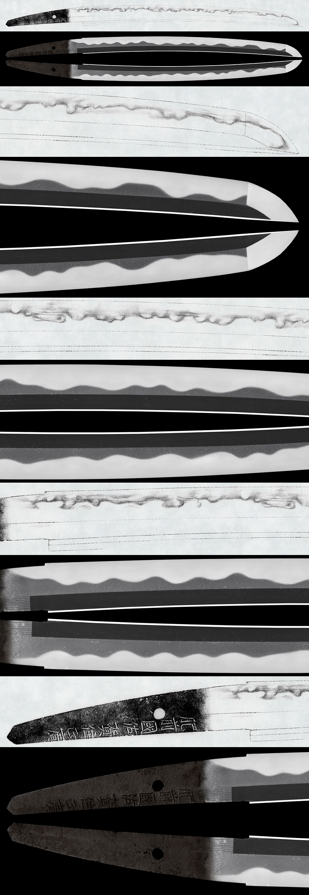 Hamon: Nie-deki, gunome midare.