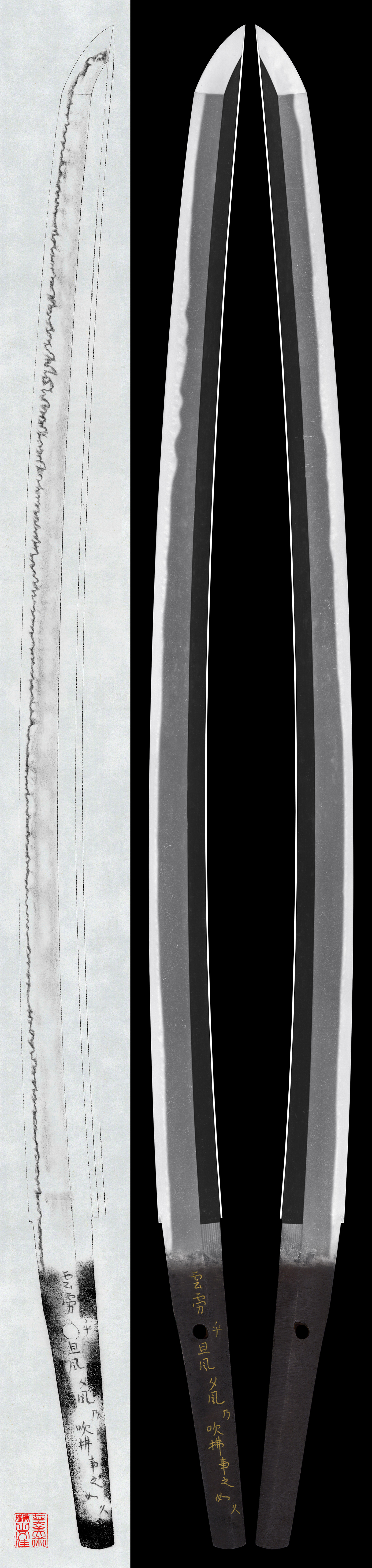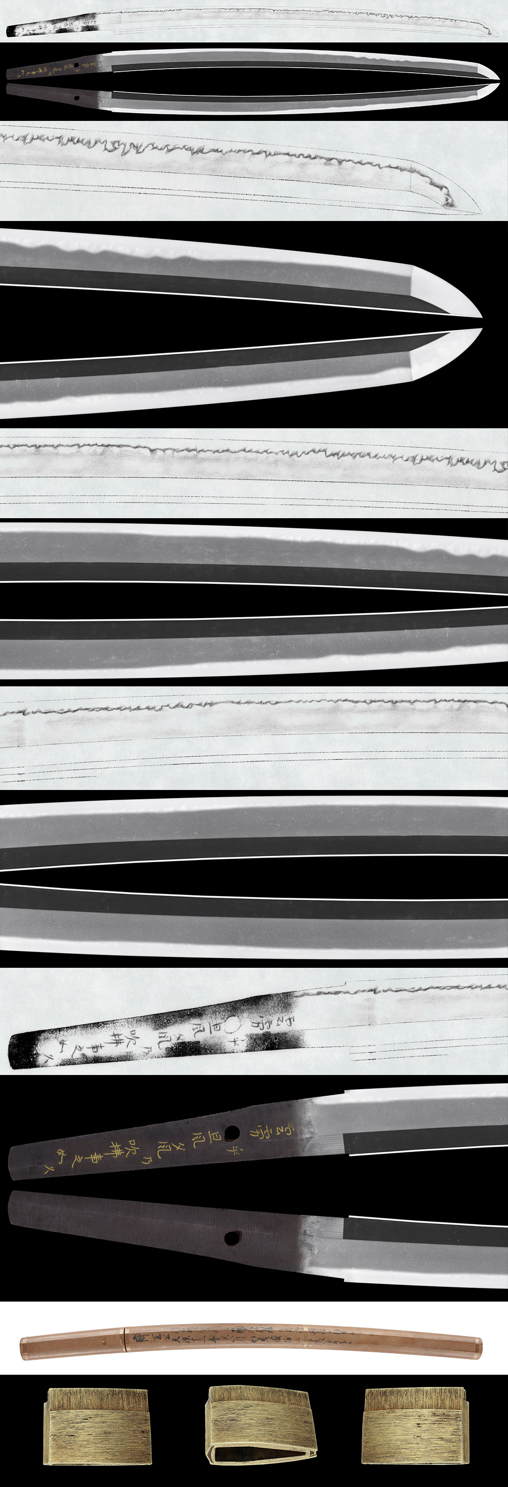 In the Nanbokucho period, the hamon evolved into tighter suguha or reversed choji-midare styles.