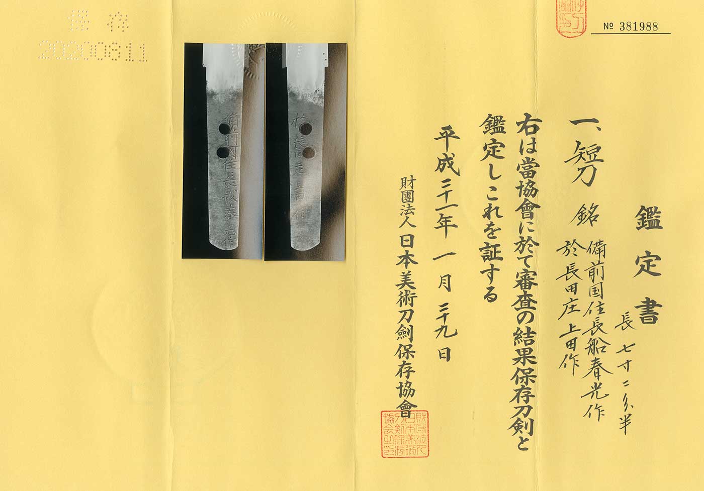 | 刀剣 > 短刀AS26066 短刀:備州国住長船春光(保存刀剣) | | ¥450,000 | 入札件数:- |