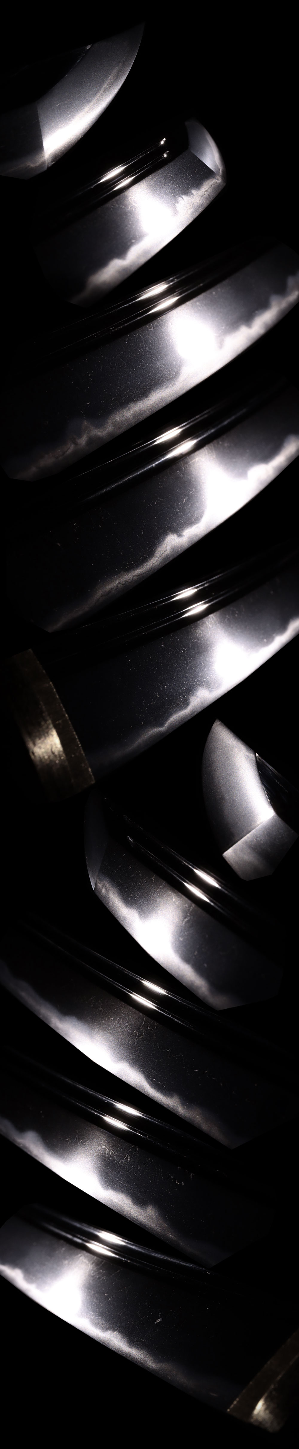 刃紋:互の目乱れの小互の目乱れは良くつき、刃中、砂流、金筋が盛んに働き帽子、のたれて先尖って返る。