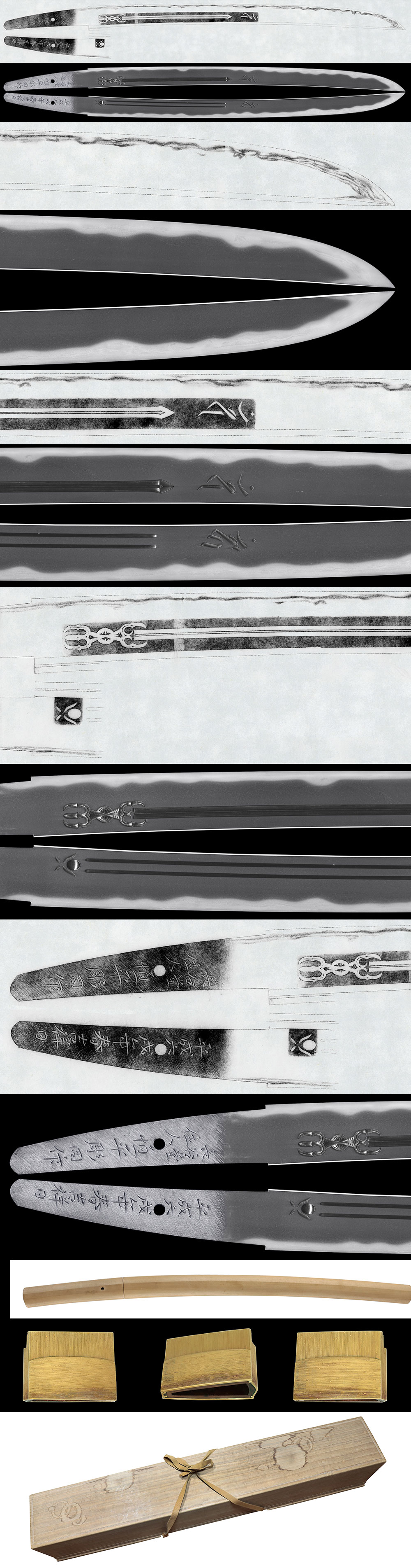 葵美術より一言:本作は南北朝時代の長義を彷彿とさせる出来です。刃中に砂流、金筋がよく働く傑作刀です。
