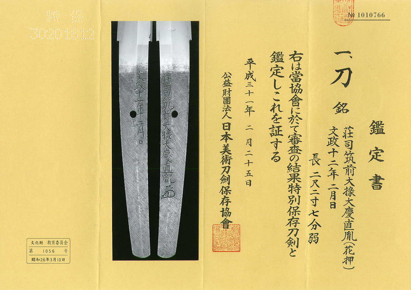 本作の出来は 荘司筑前大掾大慶直胤(花押)としては 上々作 にランクされる作品です。