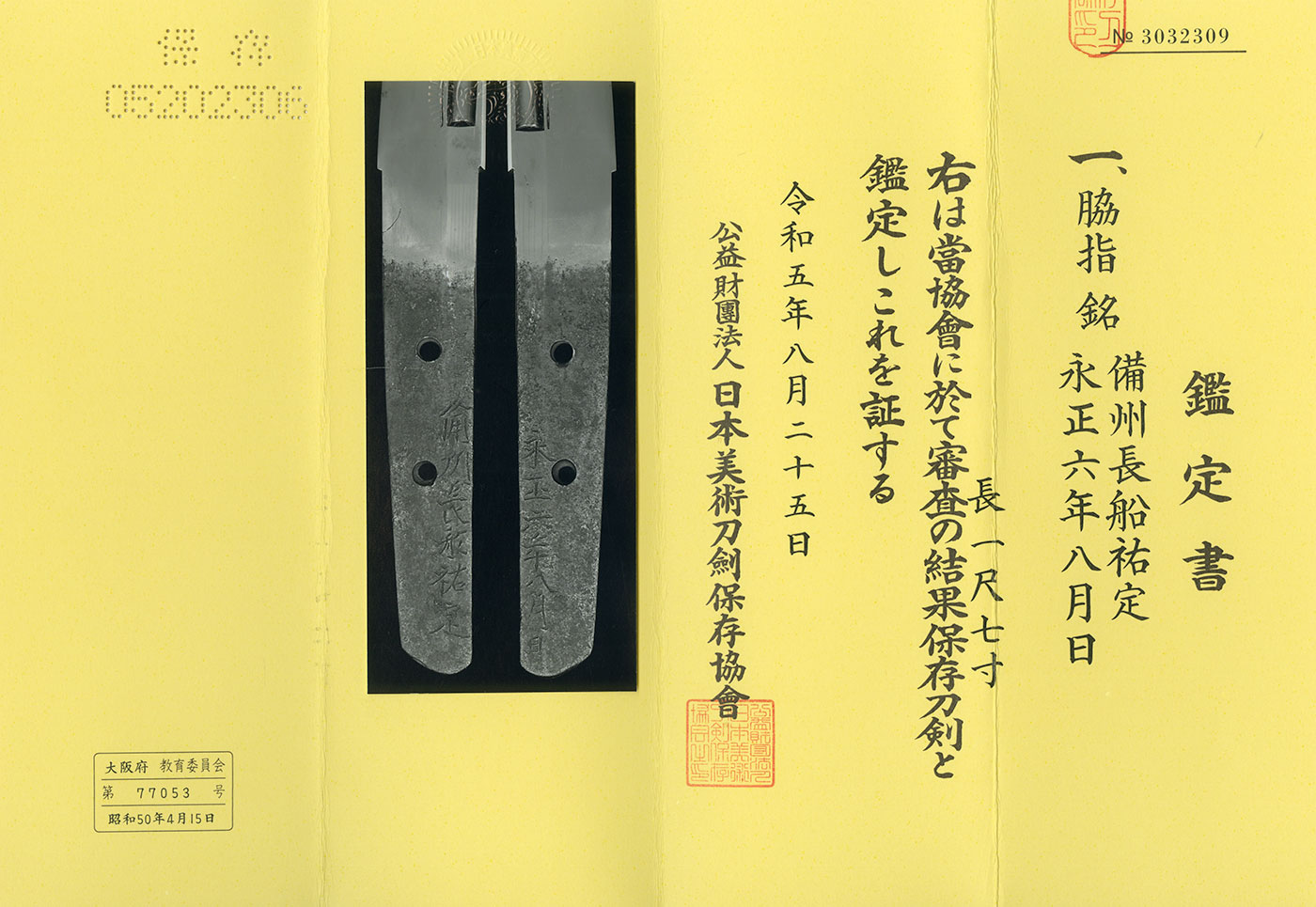 銘: 備州長船祐定 永正六年八月