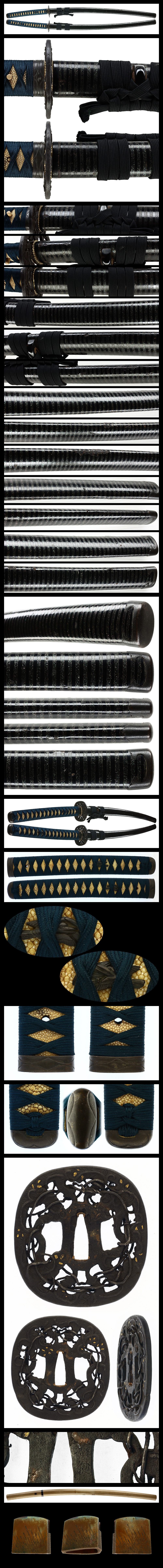 鞘:黒呂色鞘に青貝散らしで模様を描く