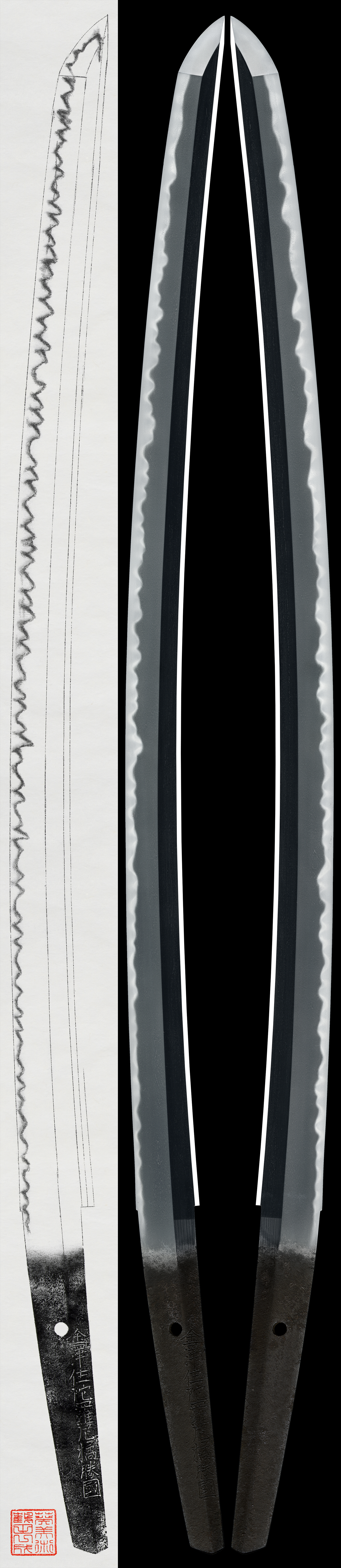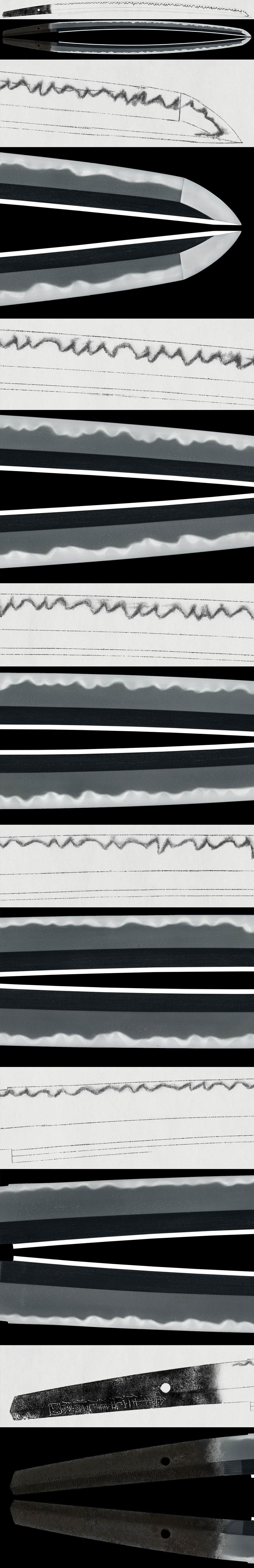 特徴:金沢住陀羅尼橘勝国でよく見るのは2代の伊予大掾橘勝国、寬文の作品が多い。三本杉の作品が得意で本作にも見てとれる。
