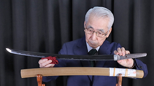 葵美術より一言:刃紋はやや低くおさまっており、刃中に金筋がやや長く入る。品格を感じさせる作品です。