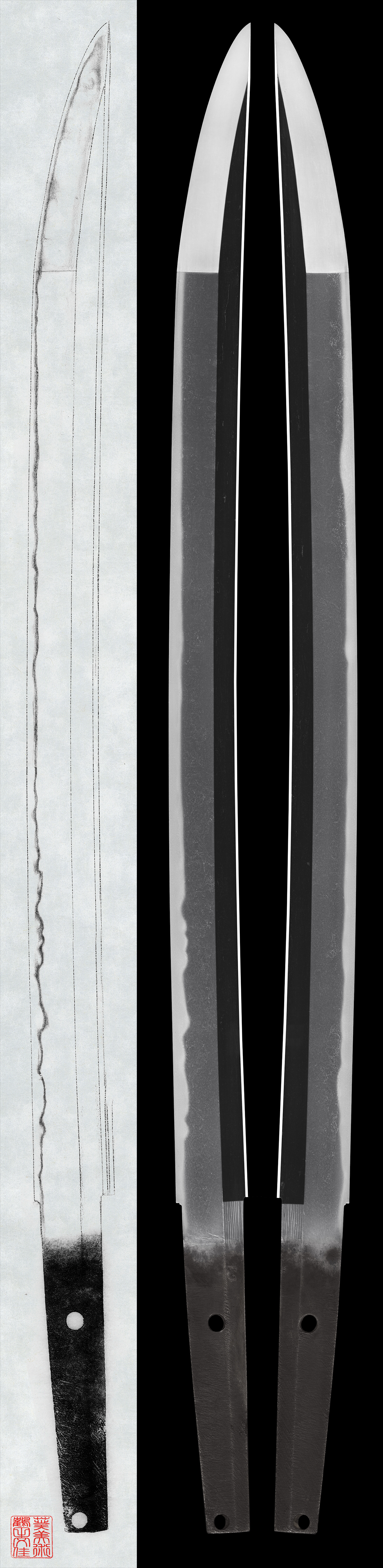 特徴:この青江は南北朝時代の作品で特に鋒が大きく、鎬地も南北朝時代から鎌倉時代の作風となる。