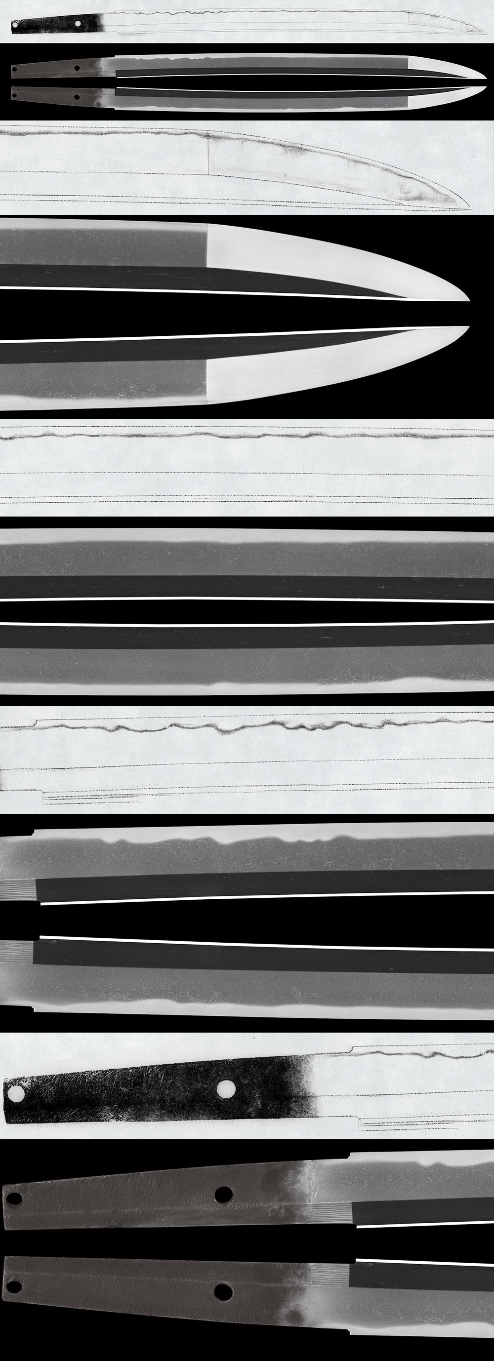 体配:大擦上無銘で身幅、重ねしっかりとした脇差。帽子大鋒となる。