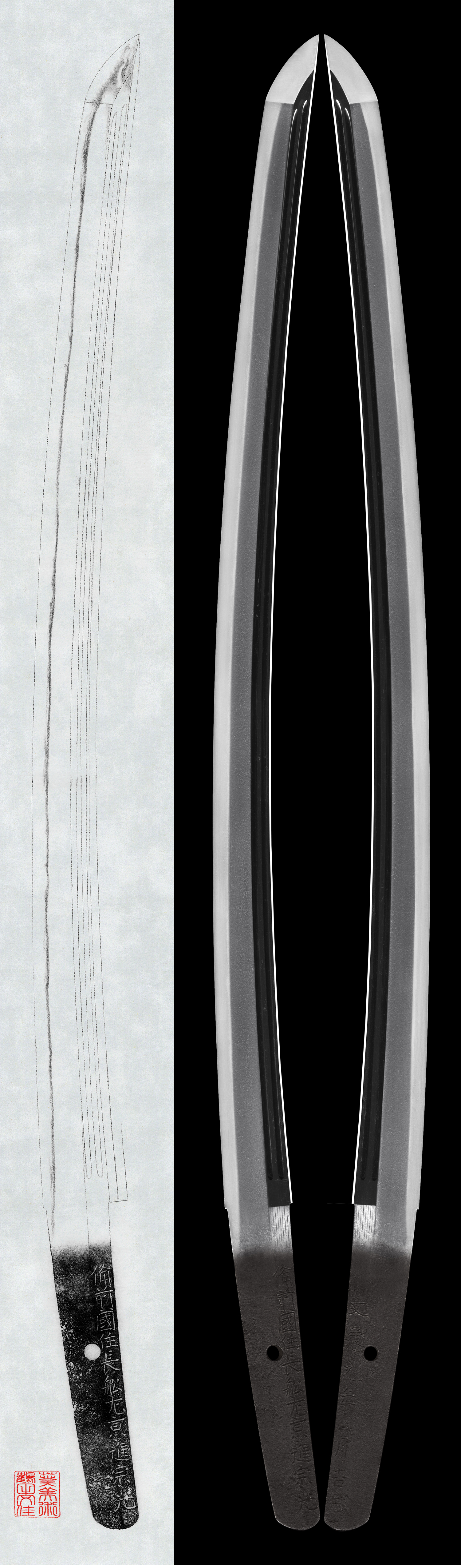 体配身幅がやや広く重ねのある作品で反りが深く、二筋樋がつき、鋒が伸びた体配の良い作品です。