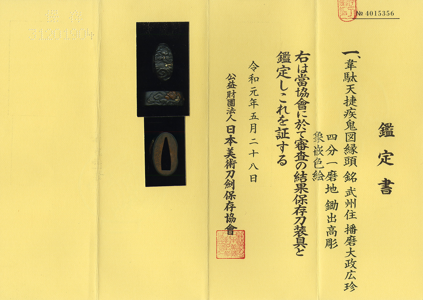 縁頭:(保存刀装具) 銘:武州住 播磨大政広珍