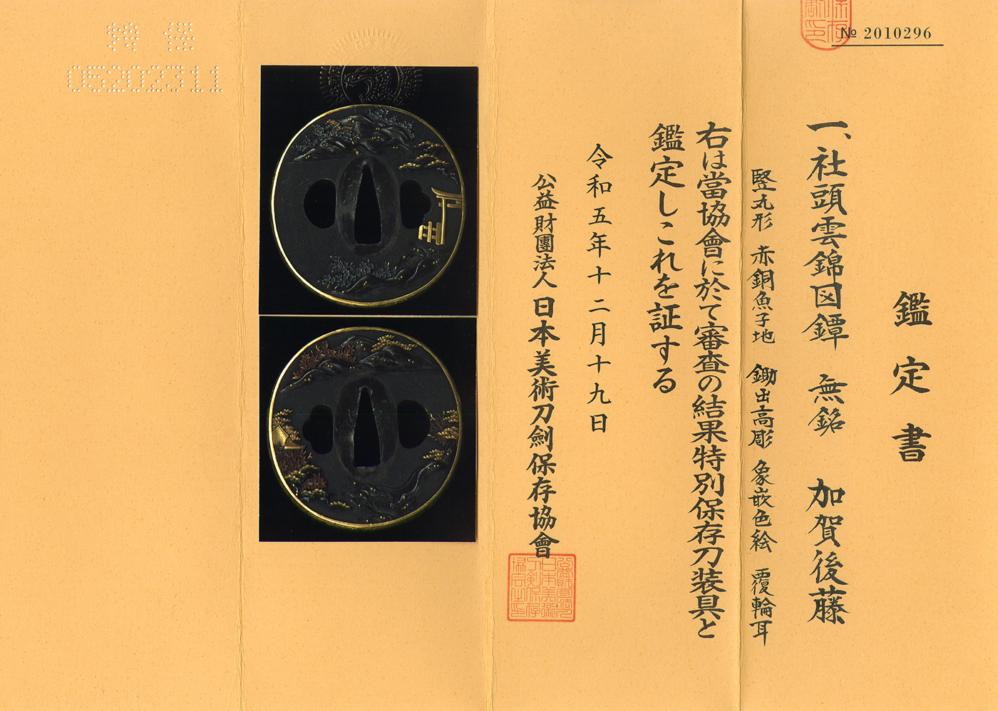 特別保存刀装具鑑定書
