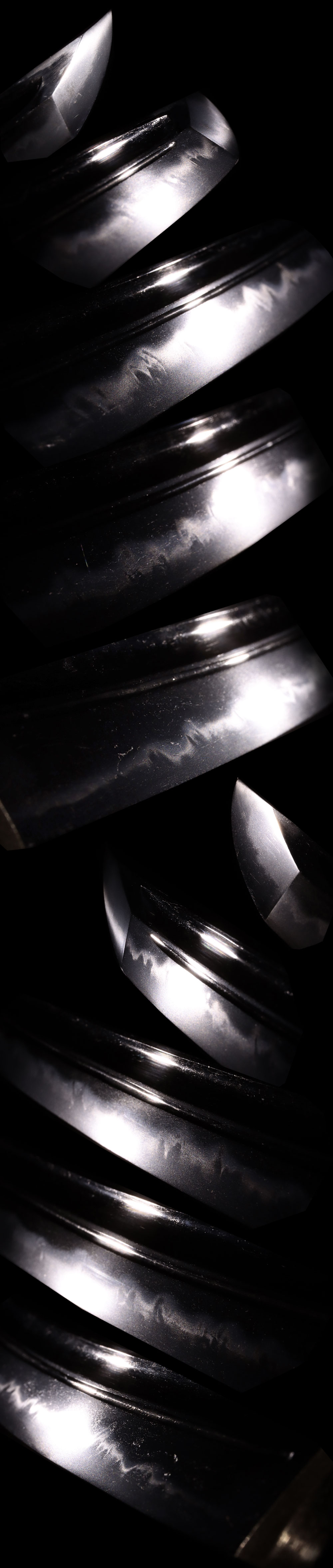 体配:身幅が広く、重ね厚く、反りが深く、鋒の伸びた作品です。