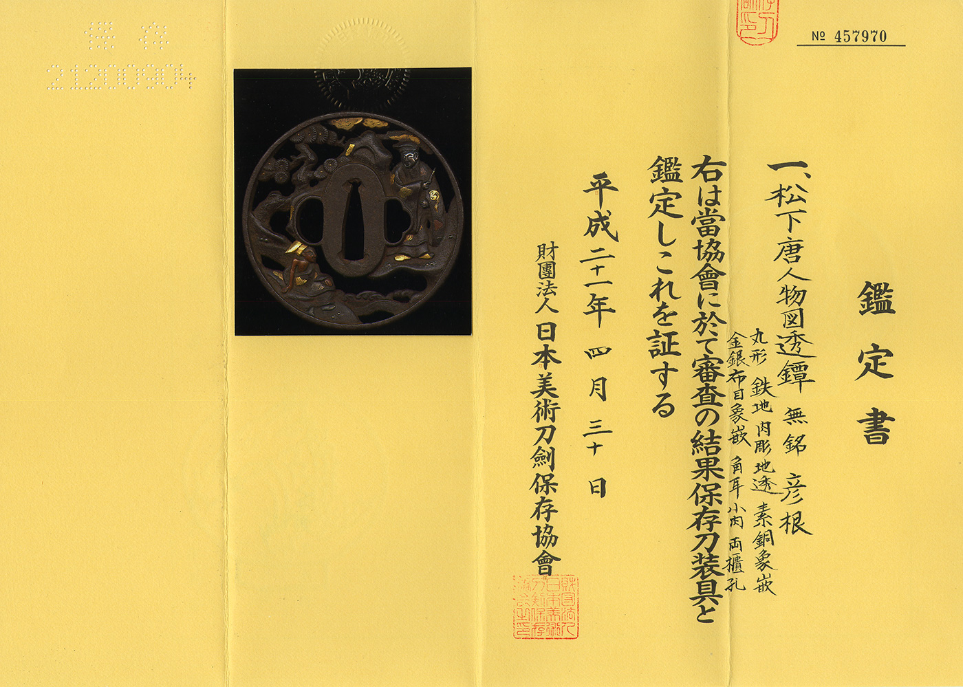 鐔:松下唐人物図透 銘:無銘(彦根)