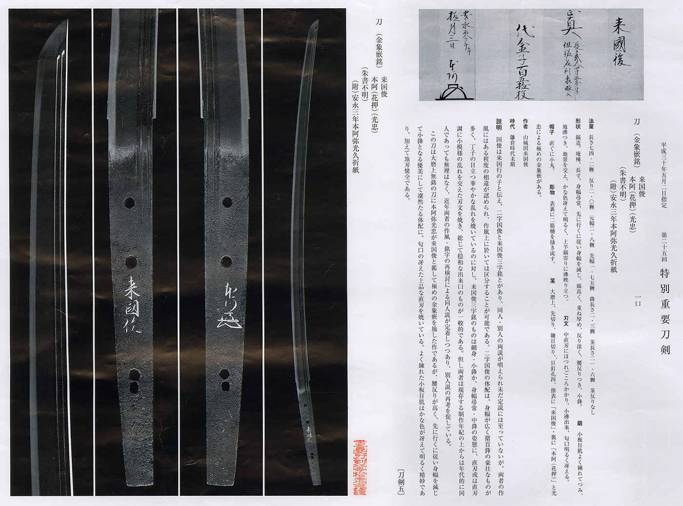 特徴:この作品は平成6年、第40回重要刀剣であり、平成30年5月2日に第25回特別重要刀剣に合格した作品です。