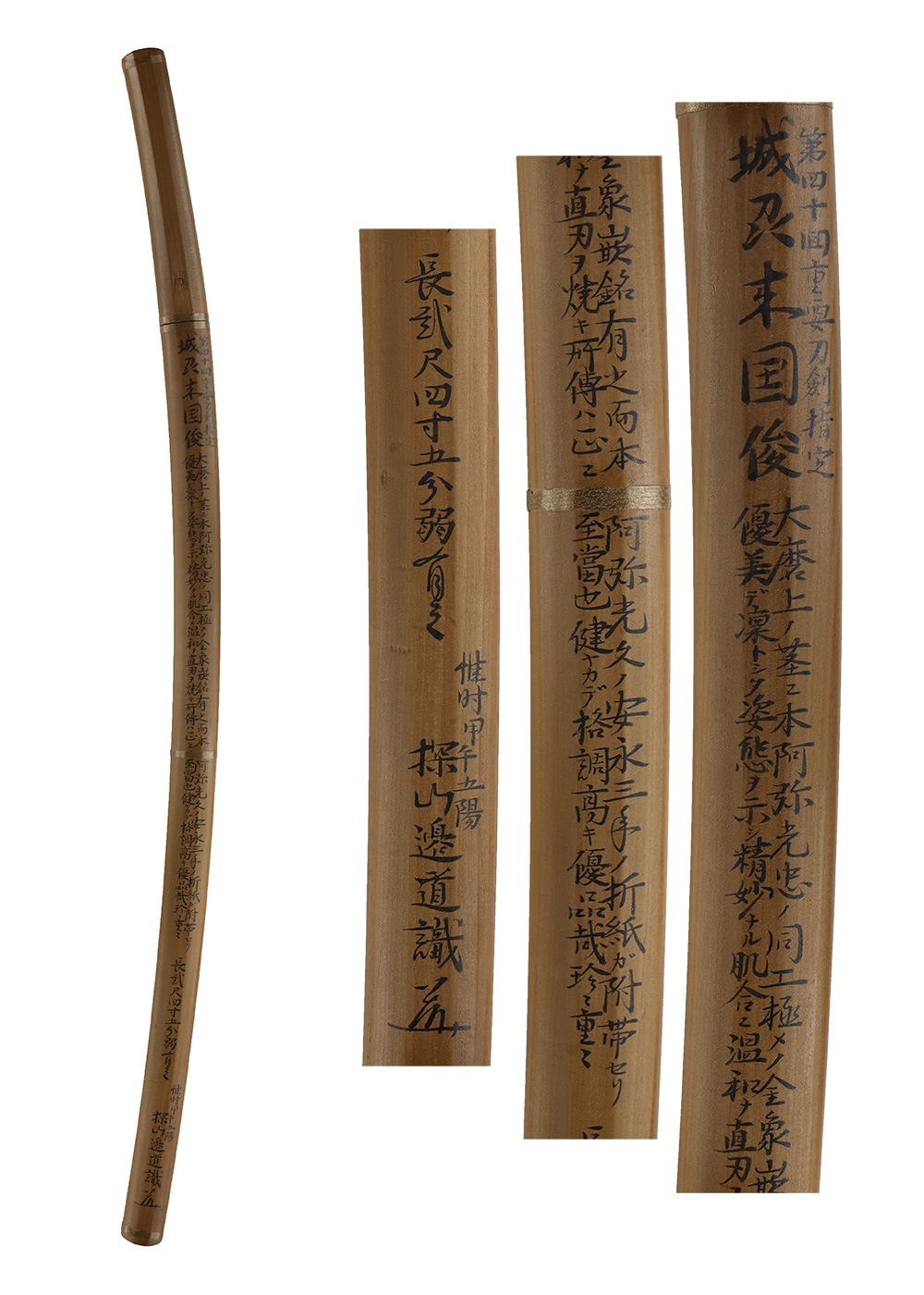 城州来国俊、大磨上の茎に本阿弥光忠の同工極めの金象嵌銘有之