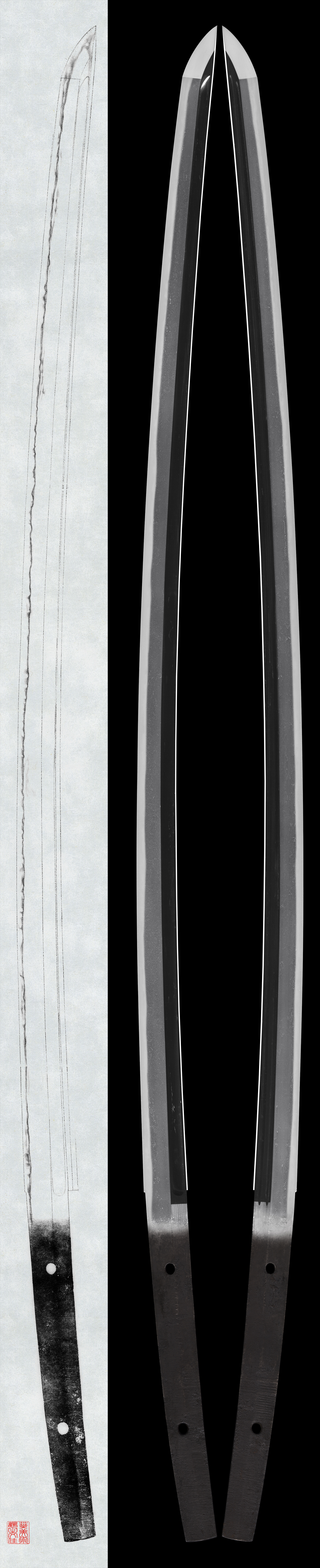 葵美術より一言:体配の良い作品で反りが深くつき、切先がややのびた作品です。雲重は穏やかな作域をしており、映りも立つ作品です。