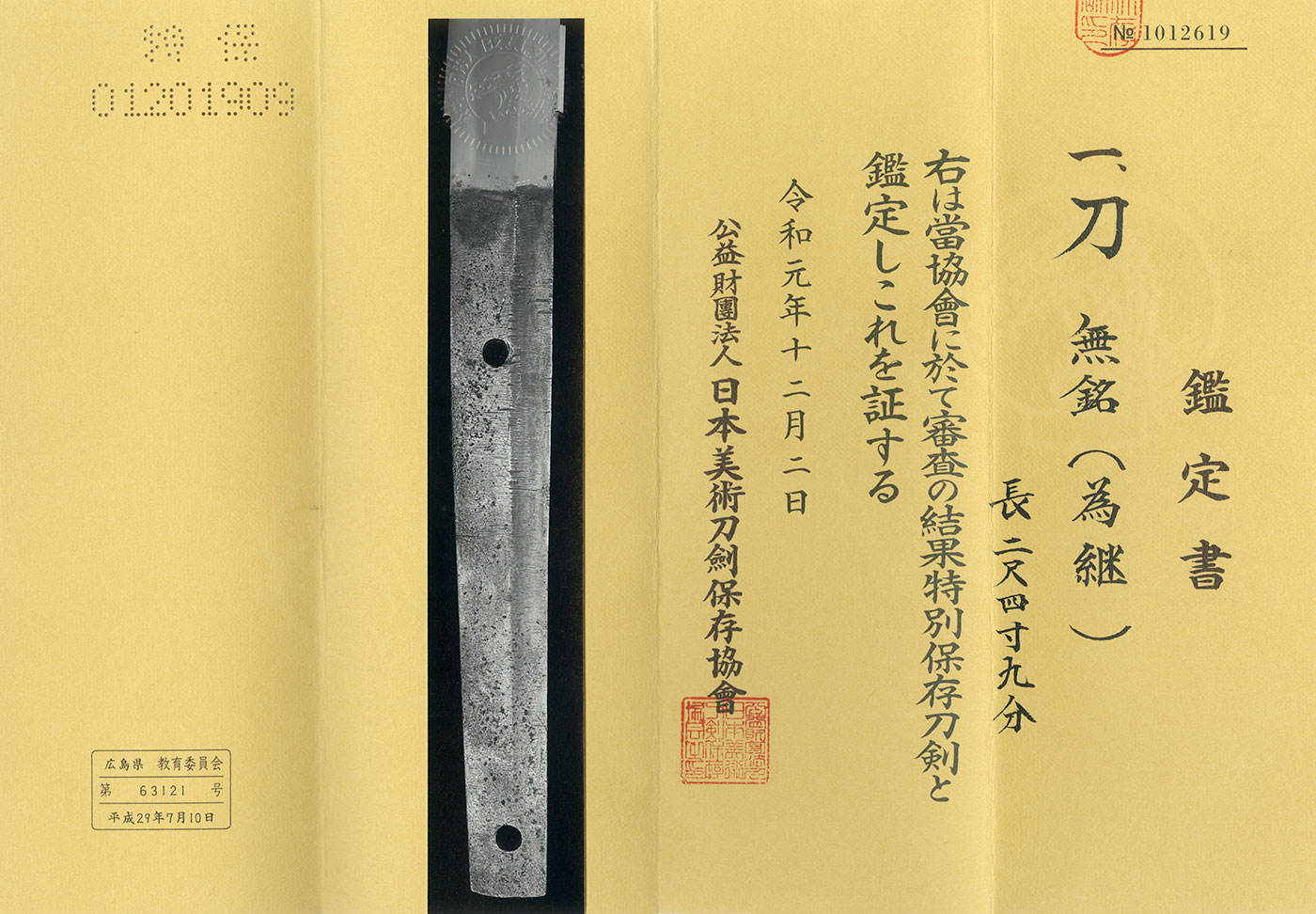 本作の出来は無銘(為継)としては 上上作 にランクされる作品です。