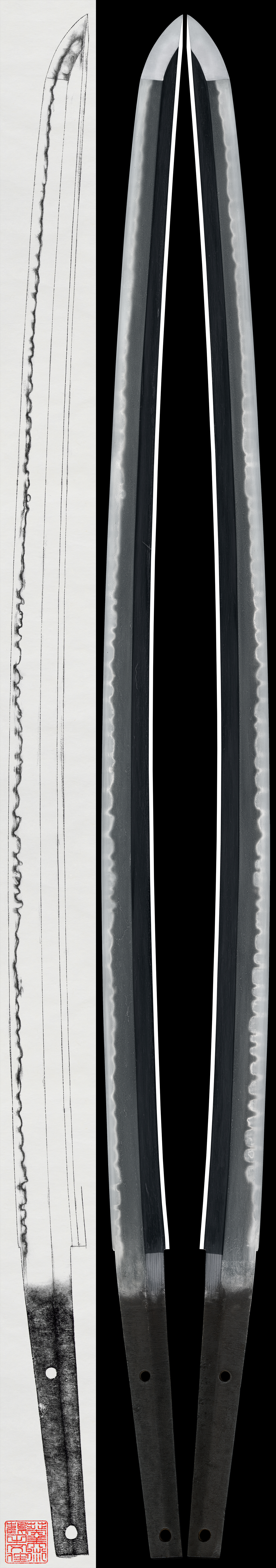 葵美術より一言:この作品にはいくつかの刃こぼれが見て取れる。また切先から5cmくらいの棟に傷がございます。