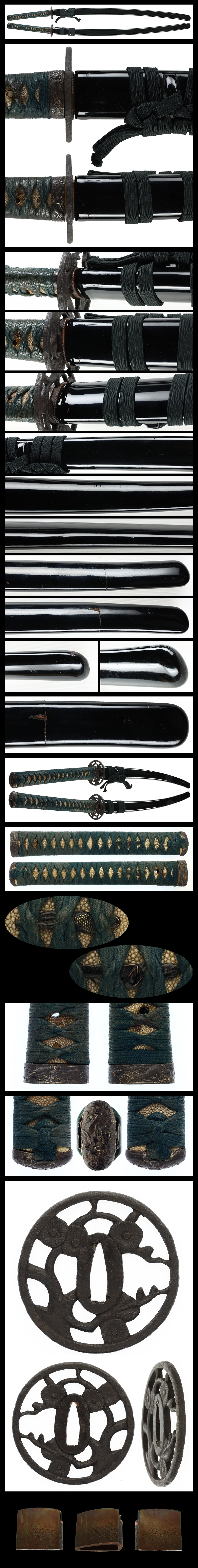 鍔:円形の鉄鍔に松の木を透かし彫りする。周りには鉄骨が出ている。