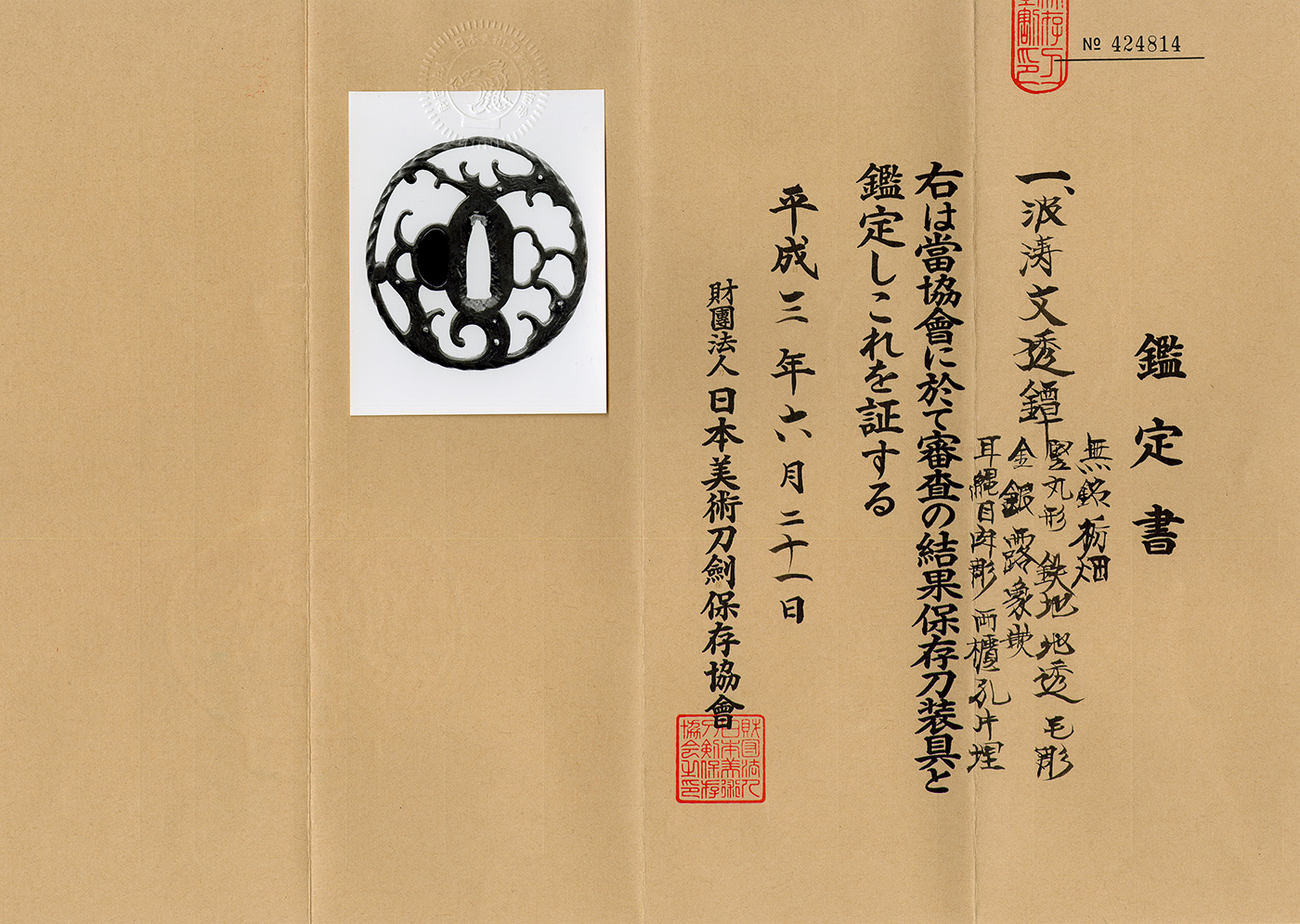桐箱 保存刀装具鑑定書 葵美術評価鑑定書