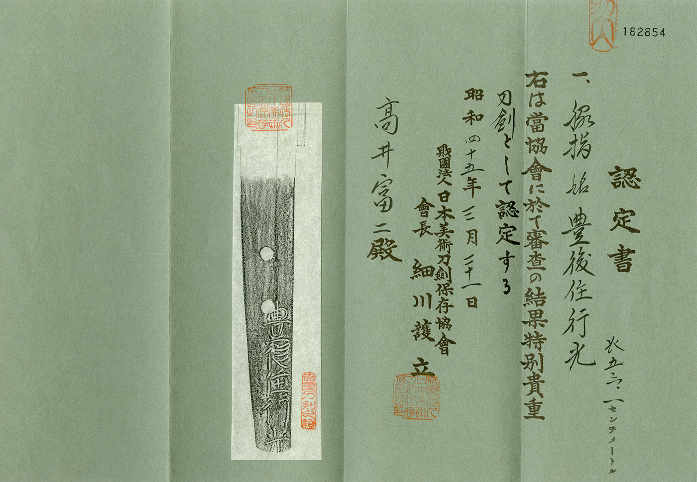 葵美術鑑定書:全身押し形