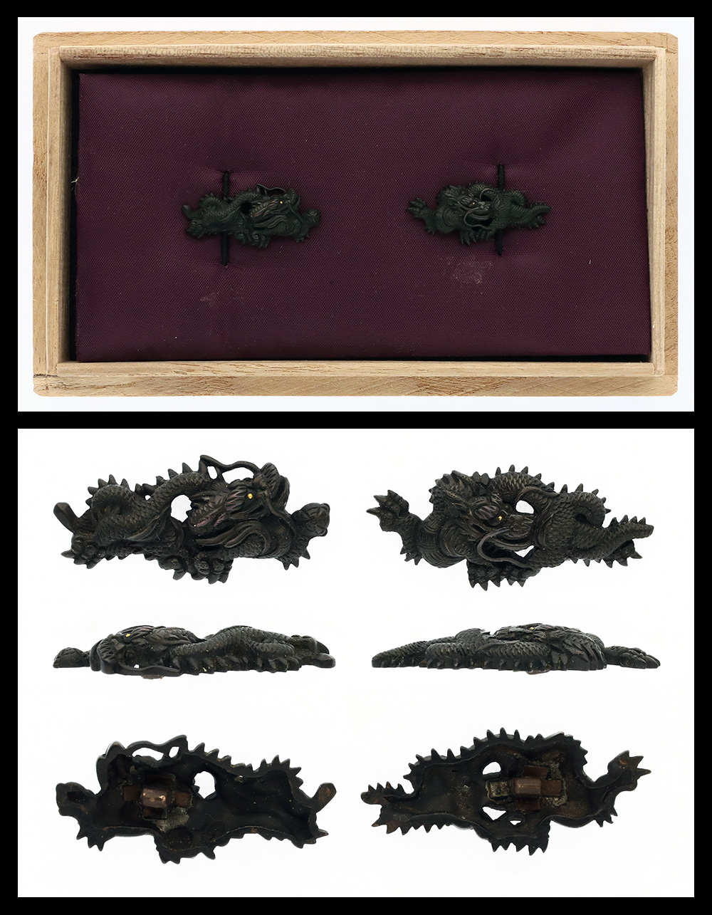 特徴:赤銅地に龍の図を容彫る。