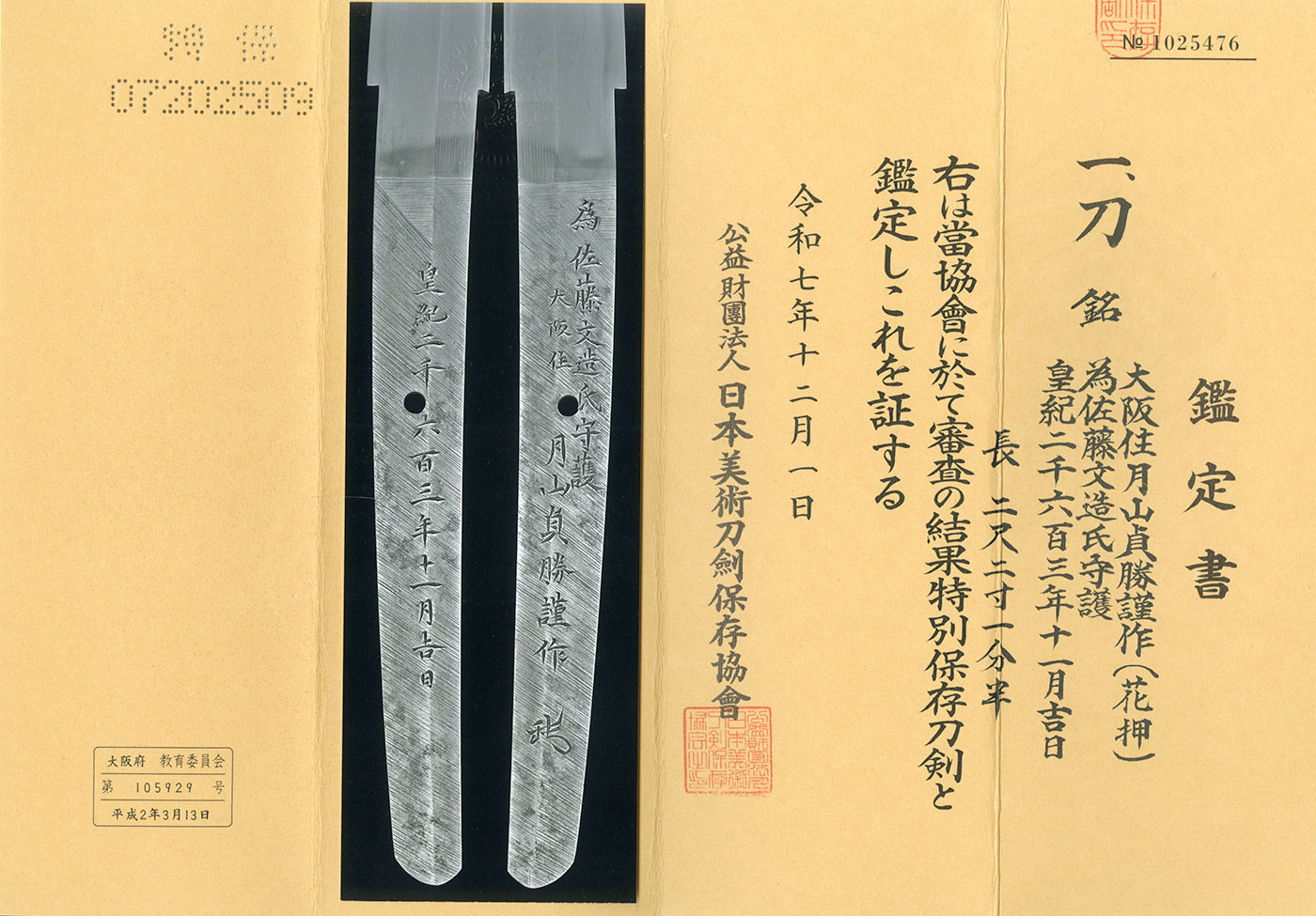 特別保存刀剣鑑定書