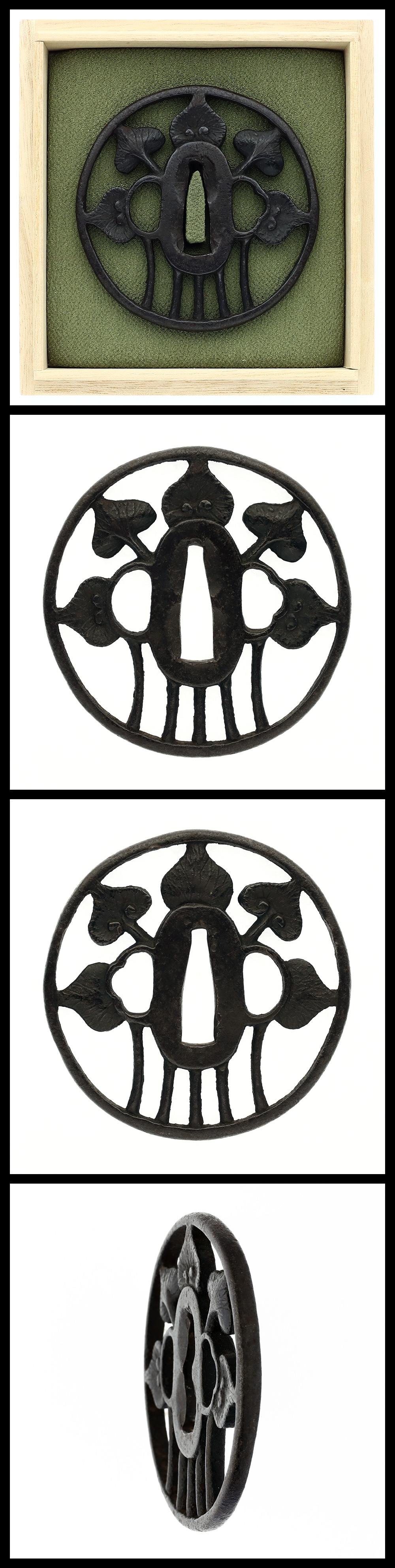 時代:江戸時代 特徴:丸形鉄鉄地に葵の図を透かし彫る。