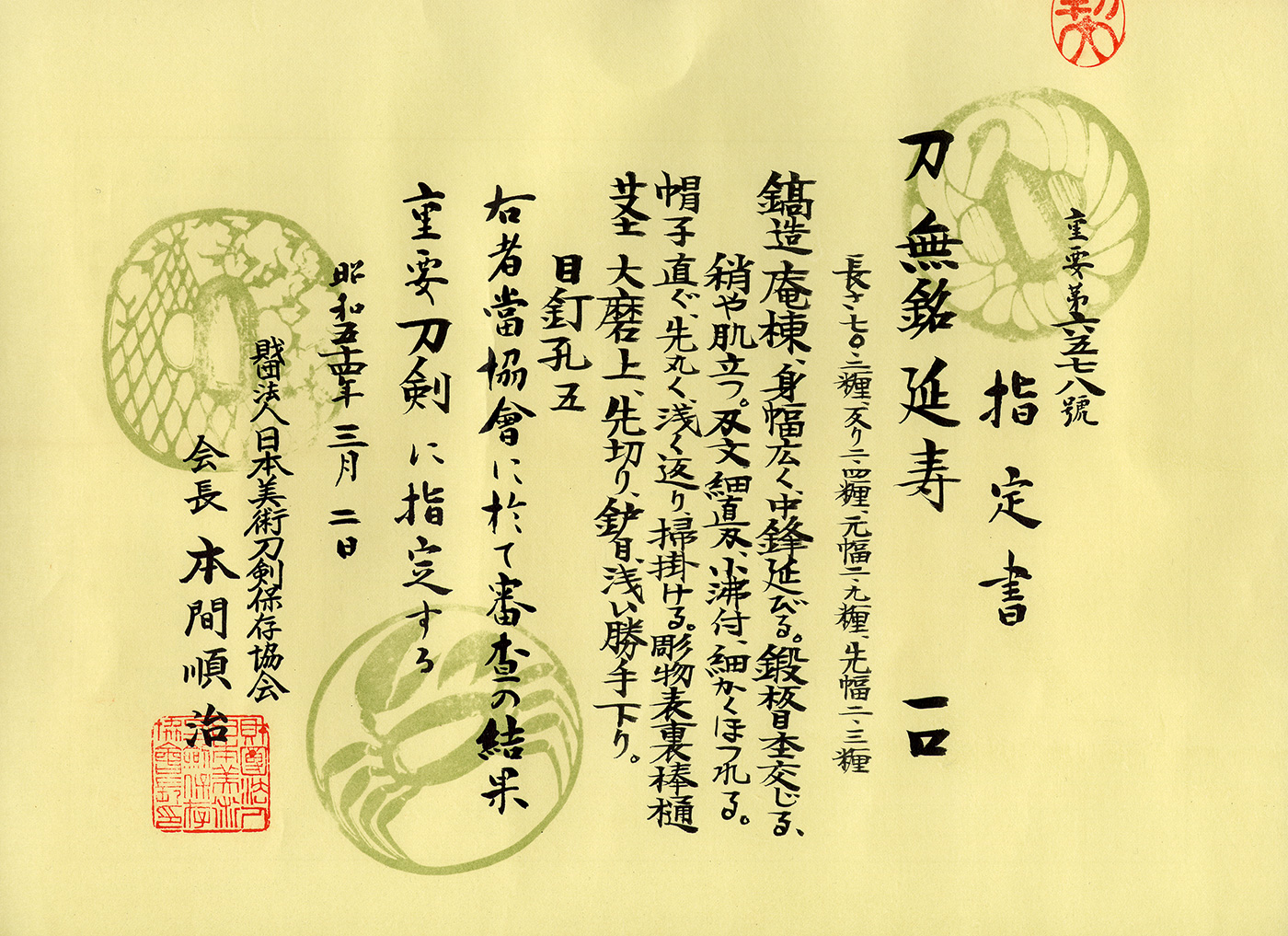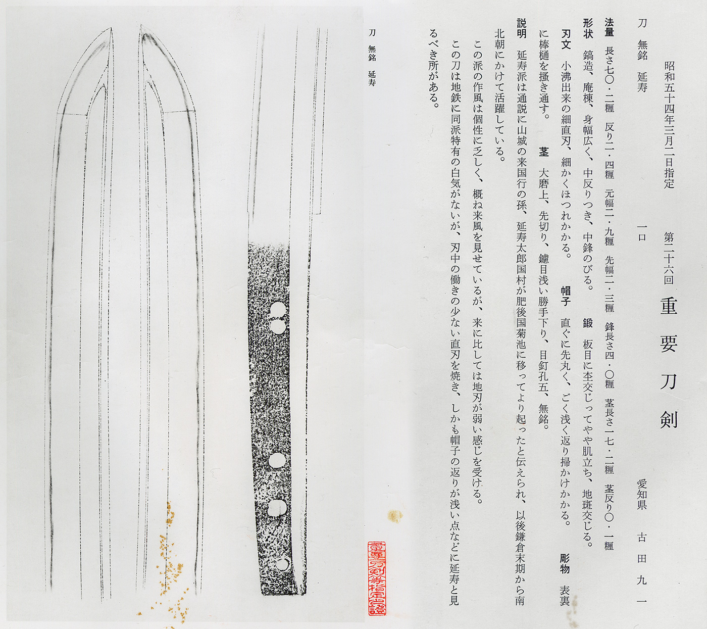 第26回重要刀剣指定書