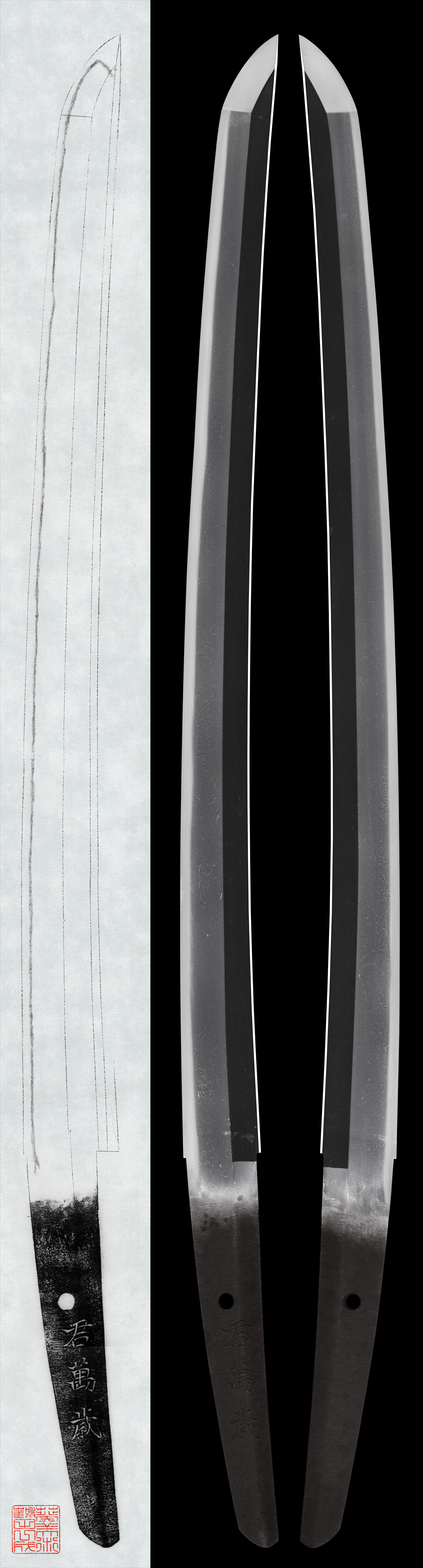 「君万歳」とは、相手の繁栄を願う言葉で、主君や天皇を指すことが多いが必ずしもそのかぎりではない。新々刀と思われる。江戸時代末期は尊王攘夷の影響が強かったためか、君万歳と刻まれた刀がたまにある。